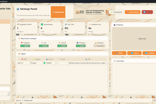 Güncel haberleri çeşitli kaynaklardan toplayan, metinlerini hazırlayan, seslendiren ve yapay zeka destekli bir avatar ile sunan tam otomatik bir video…