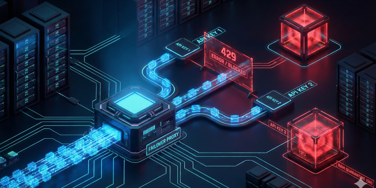 • Dinamik Karantina (RAM Blacklist): 401 veya 429 HTTP hata kodları alındığında, ilgili anahtarı 5 saat boyunca bellekte kara listeye alma.